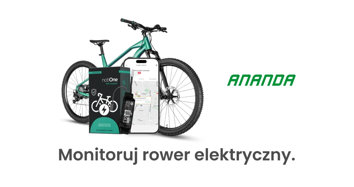 Wybierz niezawodne zabezpieczenie dla roweru z napędem ANANDA. notiOne GPS connect monitoruje położenie, zapisuje przejazdy i powiadamia, gdy rower zmieni lokalizację. To nowoczesna ochrona, z której możesz korzystać bez ograniczeń i bez abonamentu.