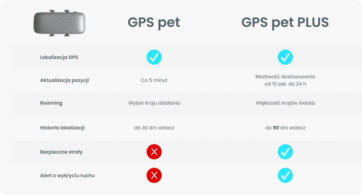 Sprawdź czym różnią się od siebie lokalizatory notiOne GPS pet i notiOne GPS pet PLUS.