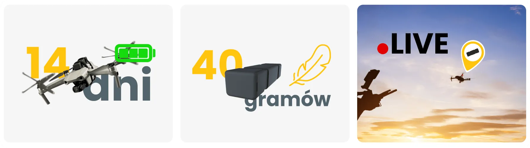 Dzięki technologii GPS + GSM urządzenie przekazuje dane z dokładnością do 2,5 metra – idealne rozwiązanie dla dronów i sprzętu wymagającego precyzji.